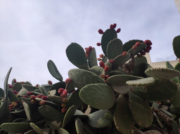 Winter, and still some of last season’s fruits hanging on to the prickly pear plants.