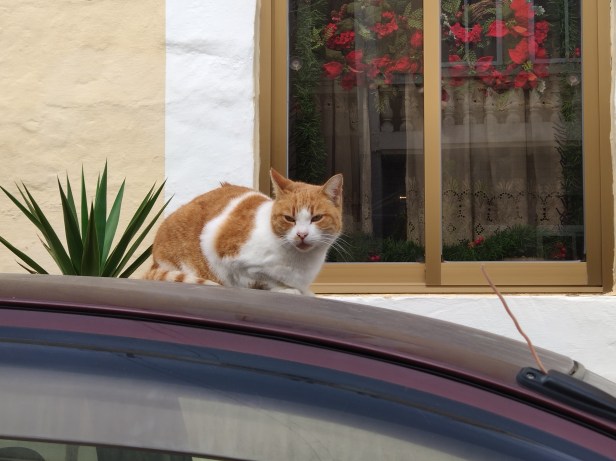 A village cat, relaxing after his breakfast and seeking the warmth of the sun.