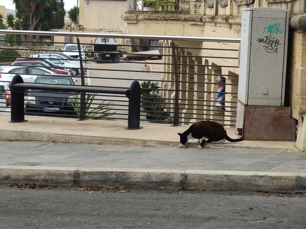 Village cat enjoying breakfast (probably not his first!)
